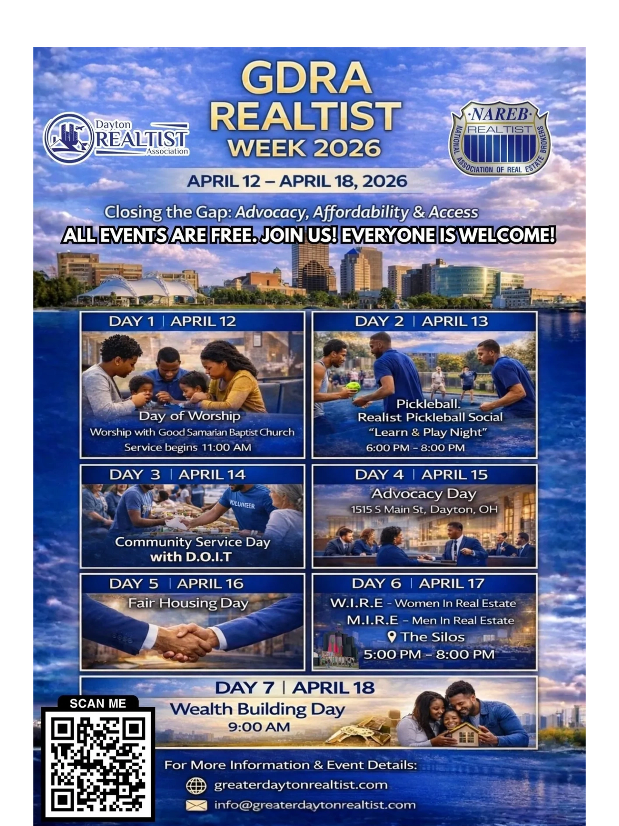 REALTIST Week 2026 is a week-long series of impactful events hosted by the Dayton Realtist Association, dedicated to advancing fair housing, homeownership education, community advocacy, professional networking, and wealth building. This annual celebration brings together real estate professionals, community partners, and residents to empower families, strengthen neighborhoods, and create lasting change across Greater Dayton.